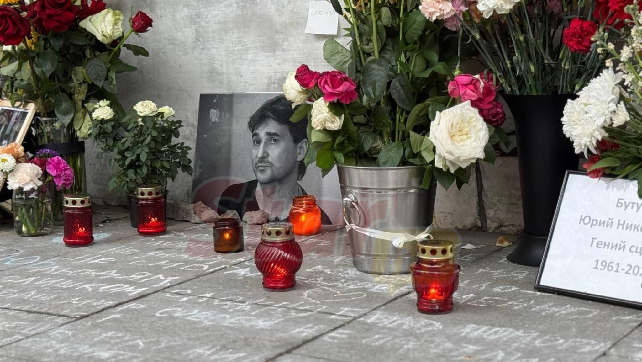 границей, а недавно прах режиссёра доставили в Москву. Теперь с любимым педагогом и наставником смогли проститься ученики, коллеги и поклонники. Похороны запланированы в Санкт-Петербурге. С самого утра к драматическому театру имени Пушкина стали приходить люди, чтобы проводить Бутусова в последний путь. У входа образовался мемориал: дорожка была устлана красными и белыми розами, рядом разместили фотографии режиссёра, свечи и воздушные шары в форме сердец. Очередь тех, кто хотел подойти